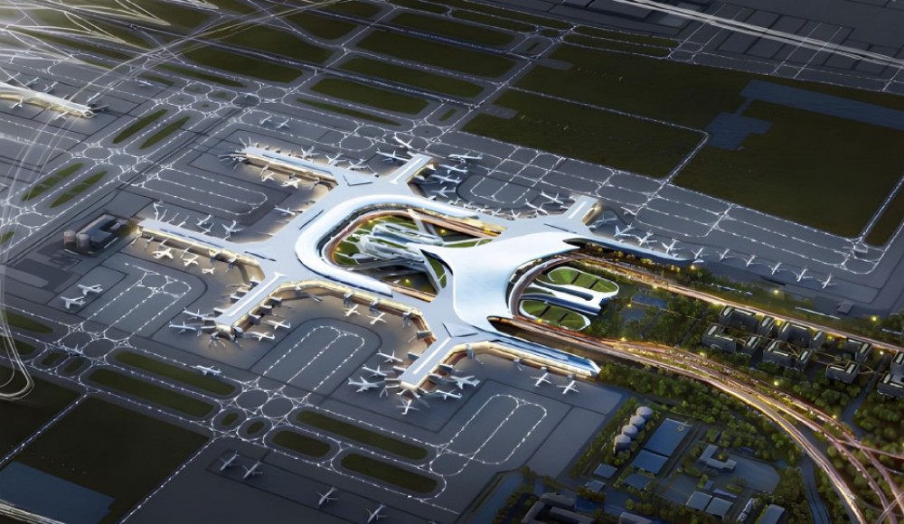 交通中心位于T1航站樓東側,總面積約80萬平方米,自東向西。自上而下將機場航站樓、磁浮、高鐵、地鐵、長途車站、公交站、出租車上客點及社會停車庫等交通設施集約布局于一體。工程地下室抗拔樁采用機械連接竹節(jié)樁7萬米。